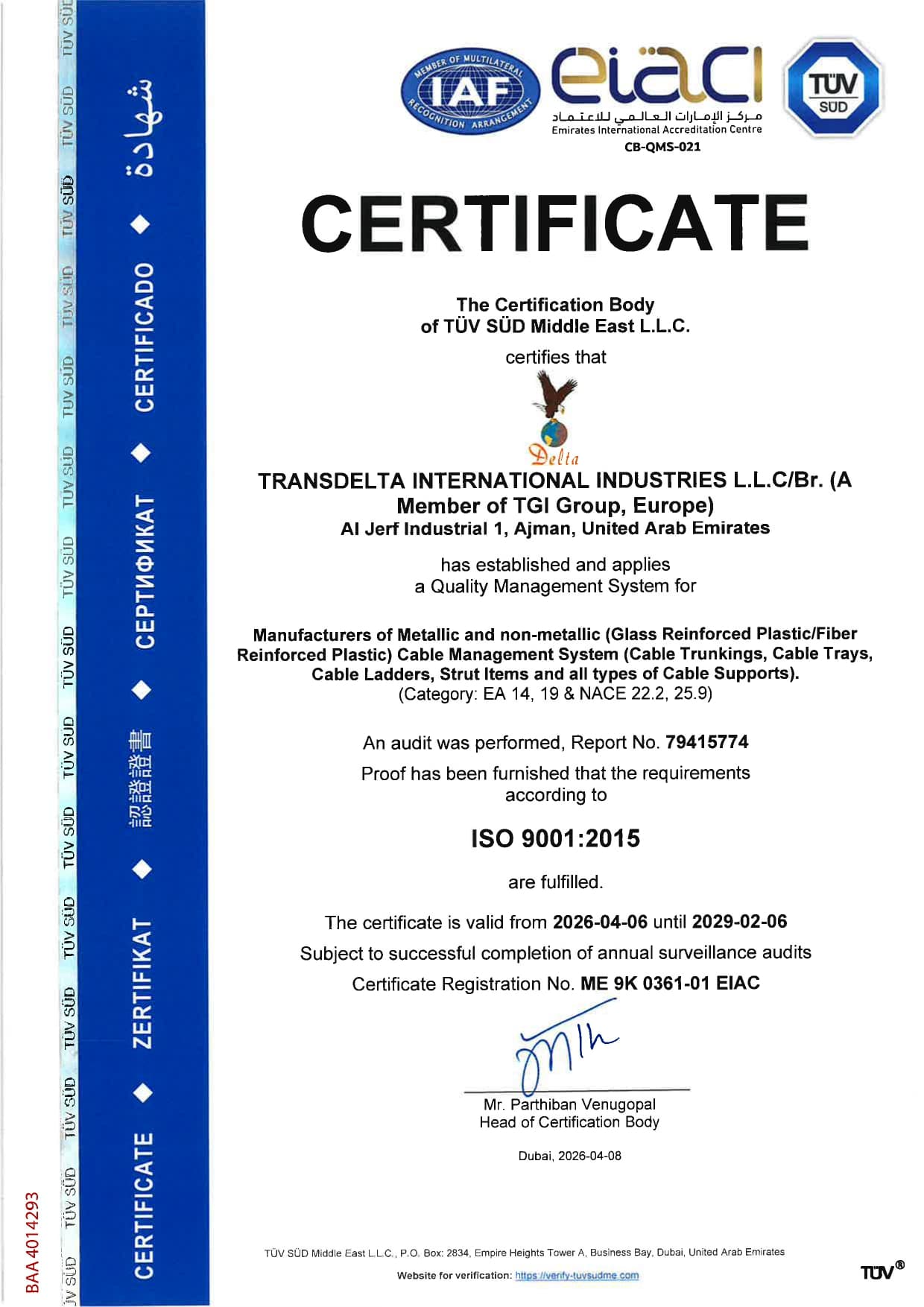 TransDelta International Industries LLC is committed to delivering products that adhere to international safety and quality standards.